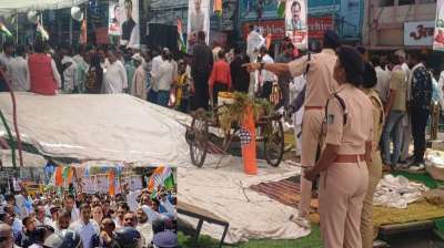 भोपाल: मध्य प्रदेश के भोपाल में विधानसभा के बजट सत्र के पहले दिन कांग्रेस कार्यकर्ता विधानसभा घेरने के लिए एकत्र हुए। रंगमहल चौराहे पर प्रदर्शन के दौरान कांग्रेस का मंच...