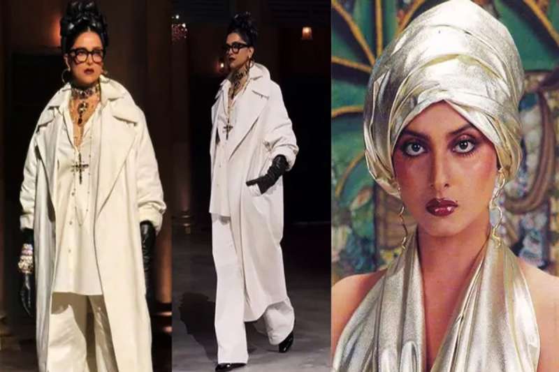 दरअसल, दीपिका ने सब्यसाची की 25वीं सालगिरह के शो के लिए मोनोक्रोमैटिक व्हाइट टेलर्ड पैंट, व्हाइट शर्ट और ट्रेंच कोट पहना था। उनके इस लुक को नेकलेस, रूबी-डायमंड चोकर और क्रॉस पेंडेंट ने पूरा किया। इसके साथ ही उन्होंने हेडबैंड पहना था। दीपिका ने चश्मा और ब्लैक लेदर ग्लव्स पहनकर रैंप वॉक किया। दीपिका के इस लुक को देखकर कुछ सोशल मीडिया यूजर्स उनकी तुलना रेखा से करने लगे।