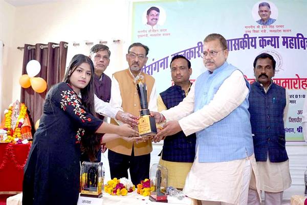 ऊर्जा मंत्री तोमर द्वारा महाविद्यालय की विभिन्न गतिविधियों में विजेता रहीं छात्राओं प्रिया नरवरिया, वर्षा पाल, हर्षिता शर्मा, स्नेहा यादव, सुमन, दीप्ति श्रीवास तथा अंशिका को पुरुस्कृत कर उनके उज्जवल भविष्य की कामना की।