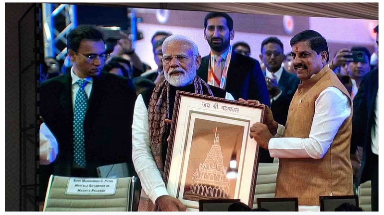 पीएम मोदी को सीएम मोहन यादव ने भगवान महाकाल की तस्वीर भेंट की।