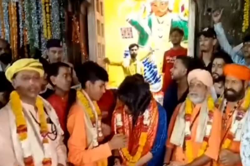 इसके बाद पुलिस की निगरानी में विधायक के बेटे देवास के माता टेकरी मां चामुंडा और तुलजा भवानी मंदिर पहुंचे, जहां उन्होंने न सिर्फ देवी की एक दर्जन पूजा अर्चना कर पूजा अर्चना की, बल्कि दोनों मंदिरों के पुजारियों को शॉल, नारियल और माला भेंट कर सम्मानित भी किया। फिर उन्होंने सभी के पैर पकड़कर माफी मांगी। विधायक के बेटे का यह व्यवहार देख मंदिर के पुजारी भी पिघल गए और उन्होंने आशीर्वाद के तौर पर रुद्राक्ष के सिर पर हाथ रखकर माफी स्वीकार कर ली। इसके बाद विधायक के बेटे उत्साहित होकर मां के जयकारे लगाते नजर आए। कुल मिलाकर मंदिर से सामने आई तस्वीरों में फिल्मी नजारा देखने को मिला।